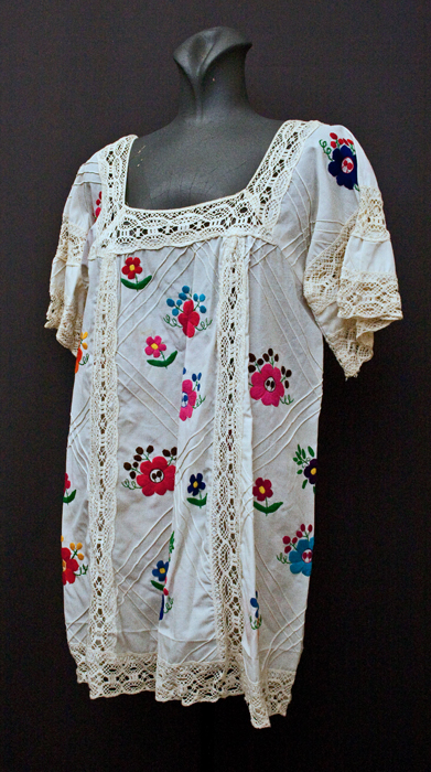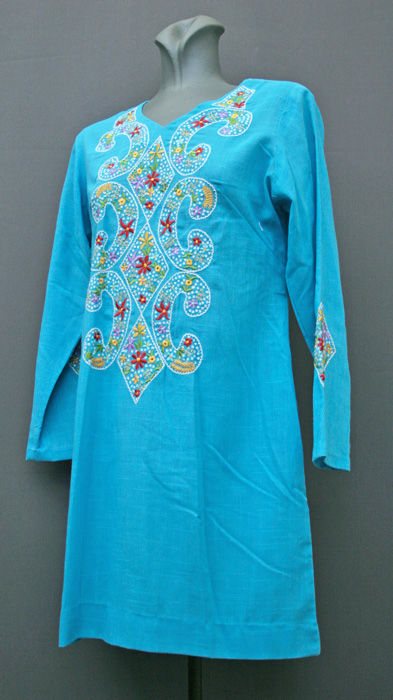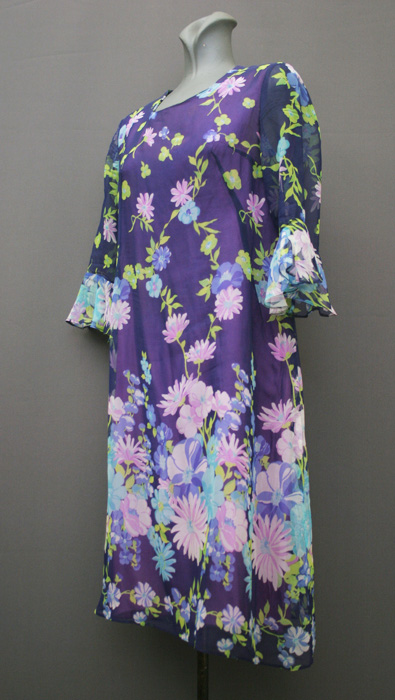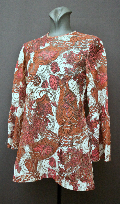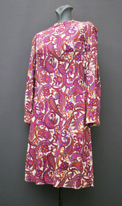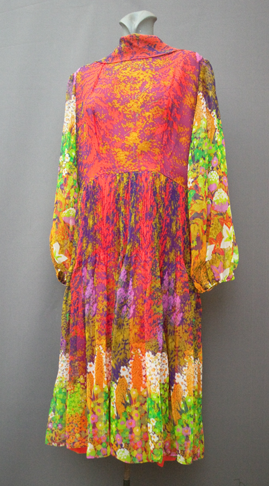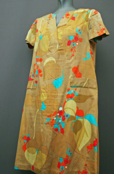 1970's day-dress, cotton dress, A-line dress, psychedelic dress, mini dress, crimplene dress, floral dress, ethnic dress
